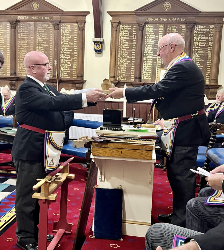 At the February meeting of the Portal Lodge 155 held at the Masonic Hall, Frome, Commander W Bro Tony Wilcox was pleased to welcome the Provincial Grand Master, Deputy Provincial Grand Master, and a good number of the Provincial Team, in addition, the Commander of the Thackeray Lodge 730, W Bro Andy Wade, accompanied by a goodly number of their members delivered the traveling Ark to Portal.