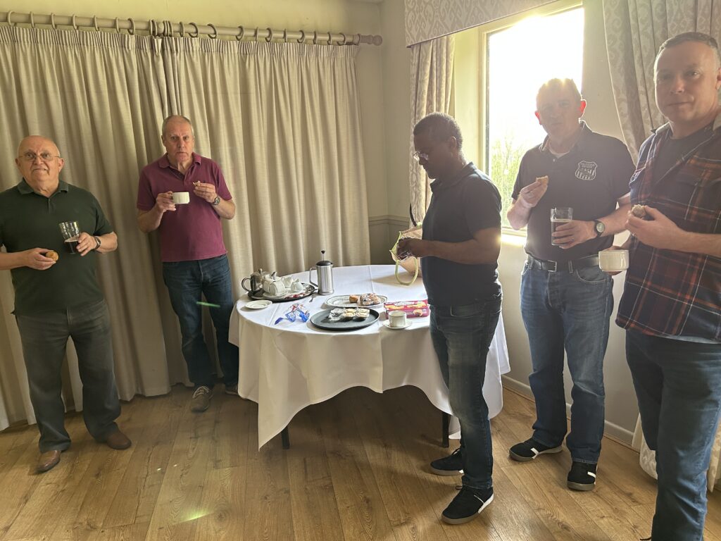 The mission was accomplished following their hard work, and the wages were paid: A well-earned ‘pie and a pint’ while some had tea or coffee with sandwiches.