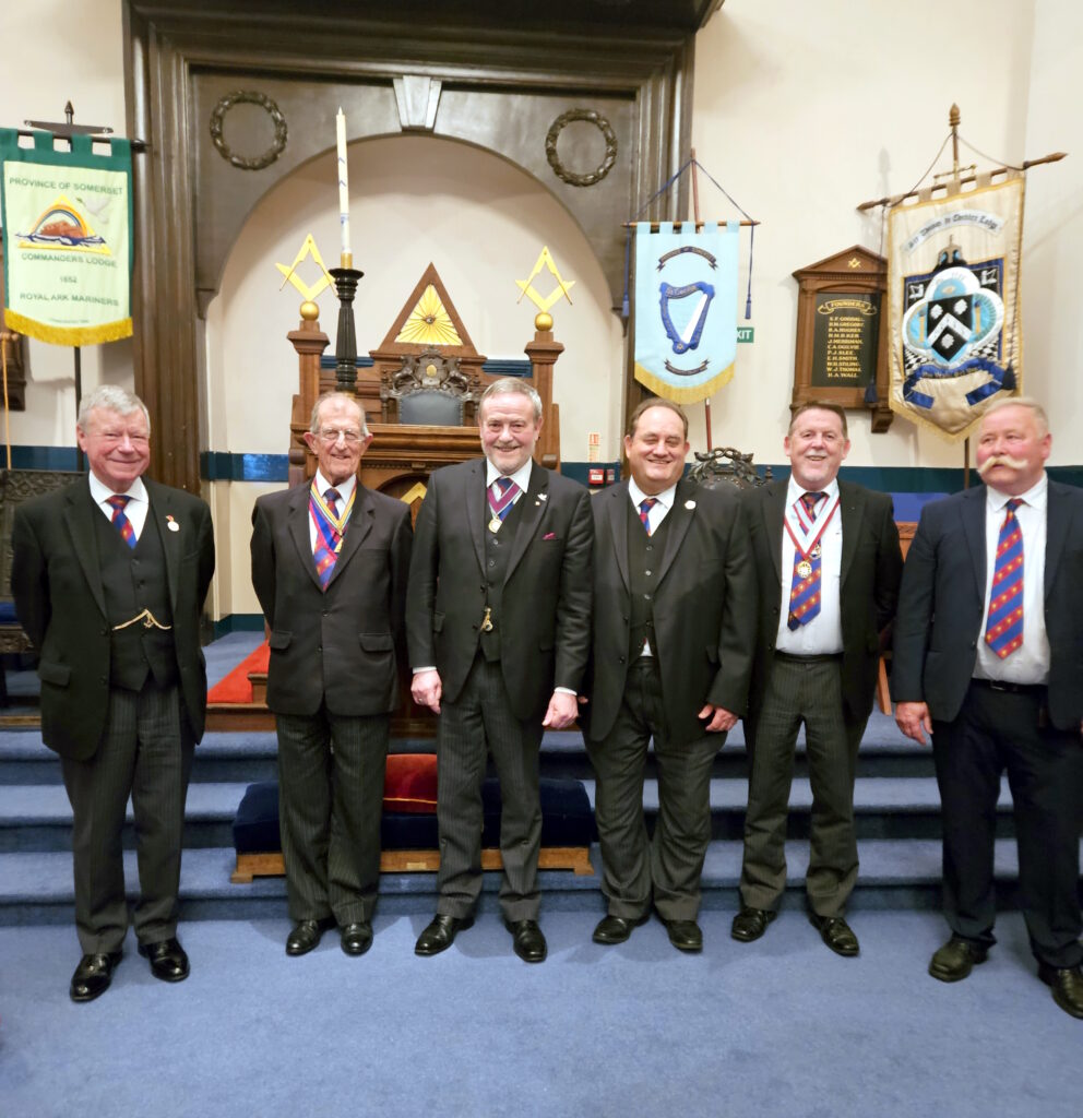 This his is second time in the chair of the Mark daytime lodge which meets at Wedmore. The lodge was honoured to receive VW Bro Geoff Nash, accompanied by W Bro Steve McNaughton, and the newly appointed Provincial Senior Grand Warden Roger Reina, who enjoyed it so much he became a joining member! Also in the photo is W Bro Richard Farmer who is standing down as DC after thirteen years.