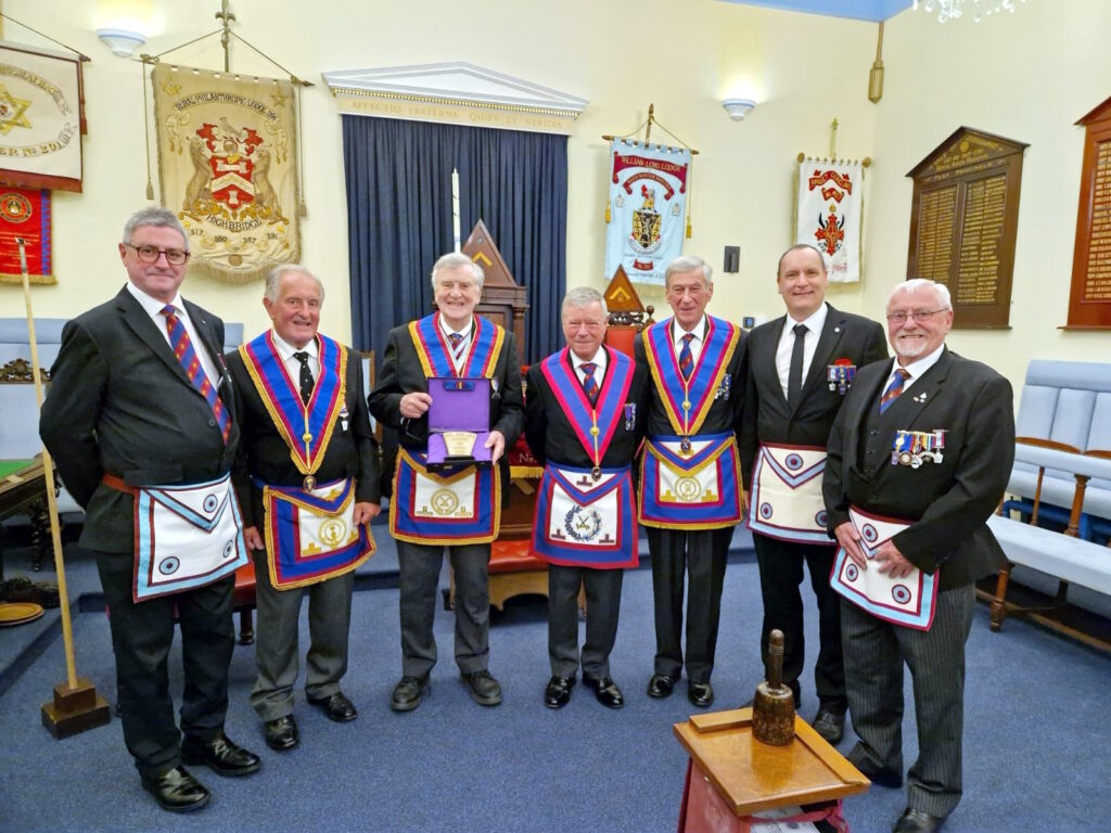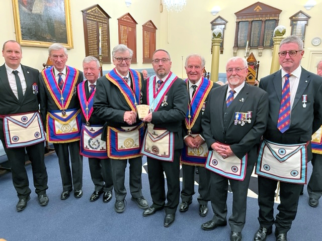 Some members of the Portcullis lodge took the Travelling keystone from Langport to William Long Mark lodge at Burnham on Sea on Friday 19th May. They were also delighted to witness a fantastic ceremony of advancement for Bro. Derek Nyenhuis.