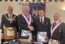 He even stayed on for some encores until around midnight. We’re still counting, but it looks like around £900 was raised from the Draw and the Heads & Tails for the magnificent Jamaican Rum Cake donated by V W Bro Jerry Gangadeen, a well-known London Mason and friend. Thanks to everyone who contributed to the evening, especially RW Bro David Ashbolt who came with his wife to promote the Festival – and, incidentally, surprising Bro Tom Nutt by presenting him with an honorific.