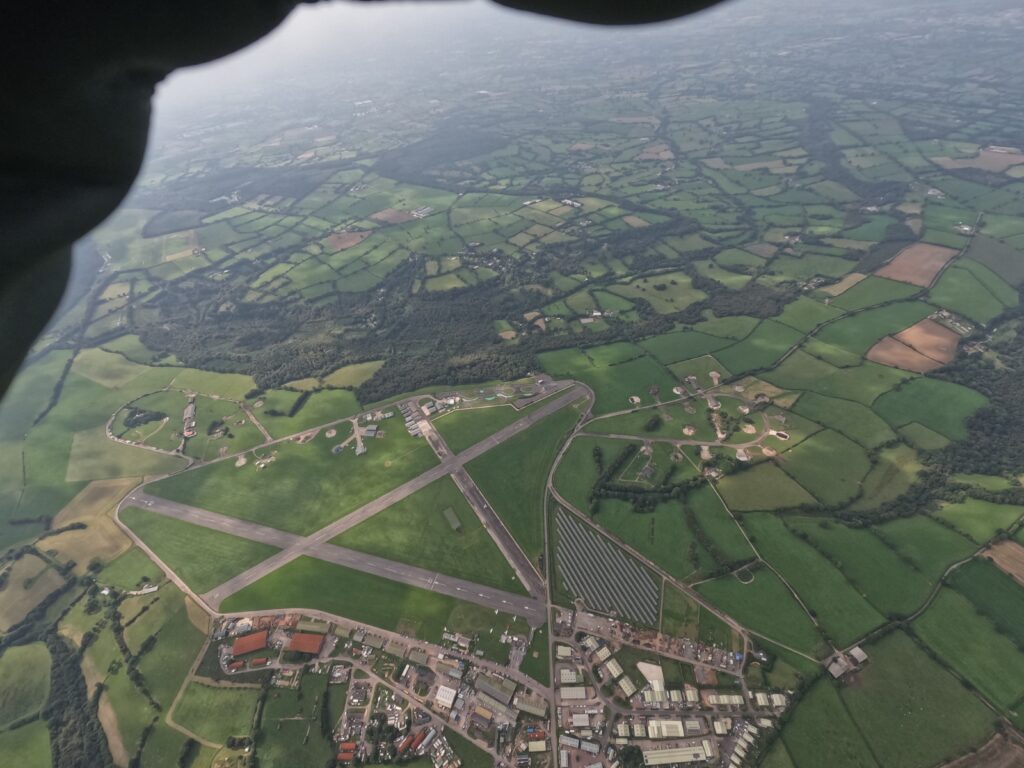 Then we steadied with a sharp jerk and opening main chute at 5,000 feet, the airfield and beautiful Devon countryside and coast was spread like a map below.