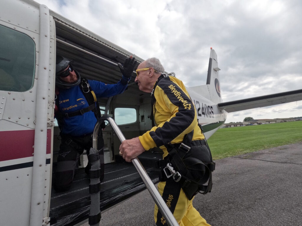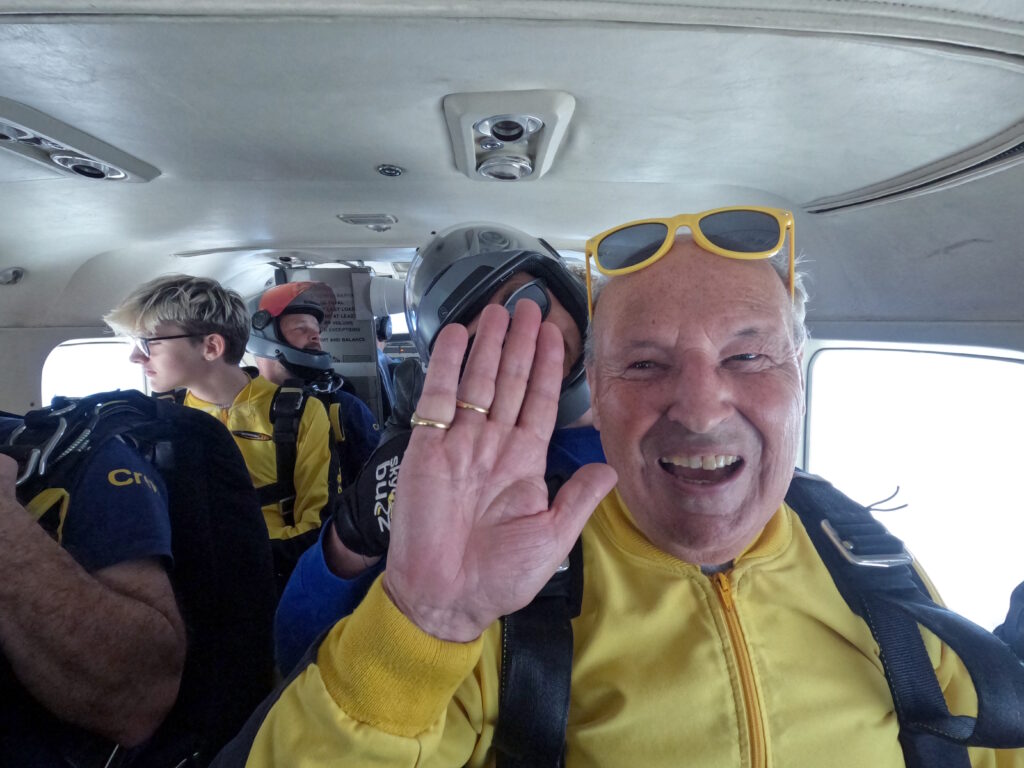 Door open, wind rushes in, clouds and the land so far below, possibly the most scary bit shuffling forward in pairs to the brink!
