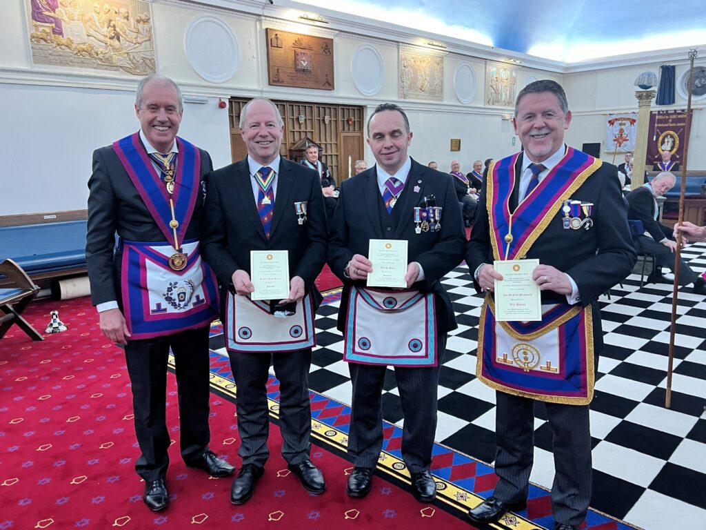 3 guests attending the meeting who had achieved Festival Honorifics through Regular Giving were presented with their collars by the Provincial Grand Master, W Bro Richard Ferris, a Patron award, and Bro Davida Pina & W Bro Ian McDonald their Vice Patron awards.