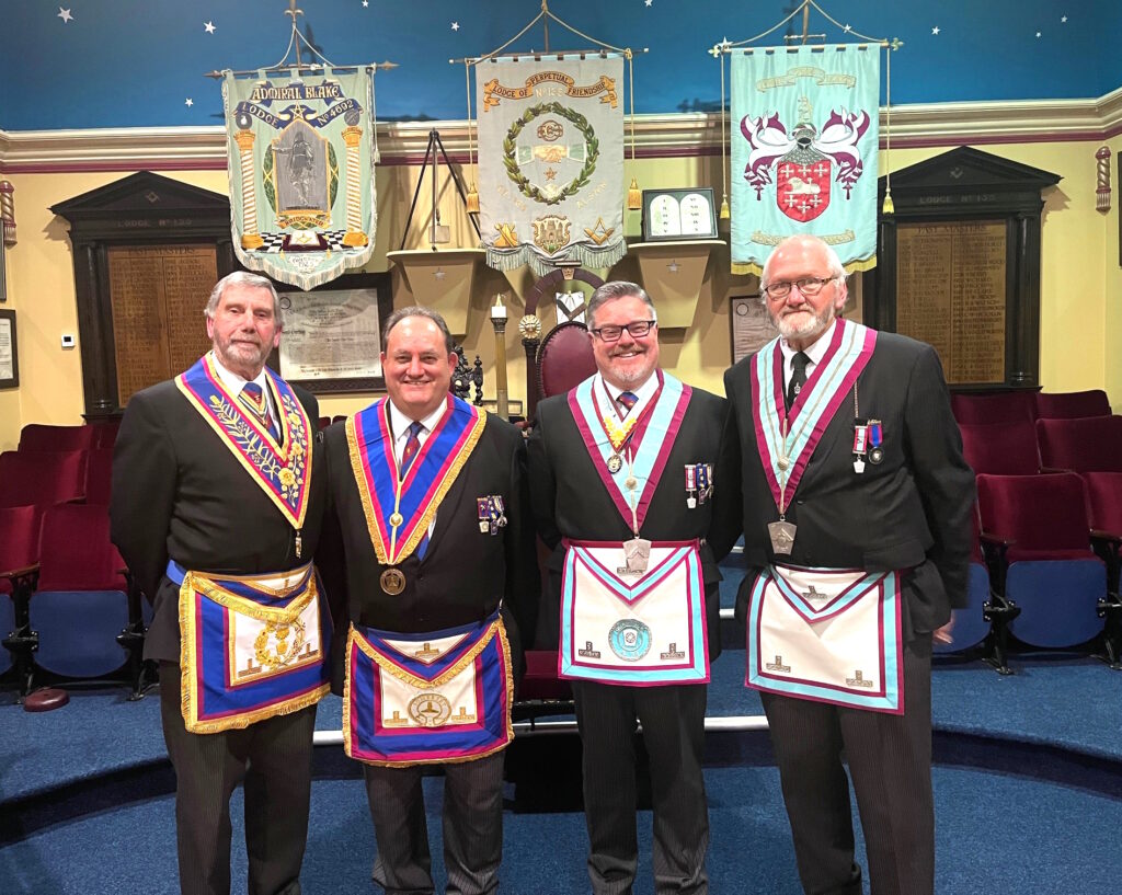 There were forty four members and guests present to witness the culmination of a full programme of work for WBro Dave Preece in his year in the Chair of the Quantock Lodge No. 749 when WBro James Brown was installed as Worshipful Master at the March meeting.