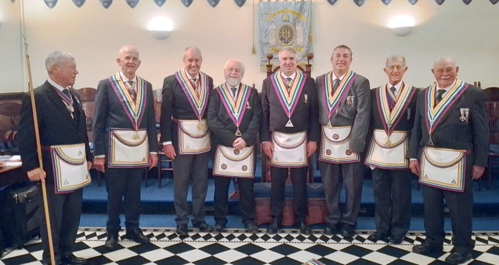 One of the last duties of the outgoing Worshipful Commander, WBro Ken Crang, was to present a cheque on behalf on the lodge for £1000, to the PGM for the benefit of the 2028 MBF Somerset Festival, which was very warmly accepted! This donation qualifies the lodge at MBF Grand Patron level, one of only two in the Province for RAM………thus far!