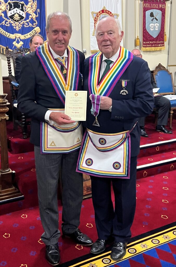 Later in the evening, (see above) the Provincial Grand Master presented Bro Terry Hulbert with his Festival Honorifics collar gained through Regular giving.