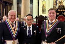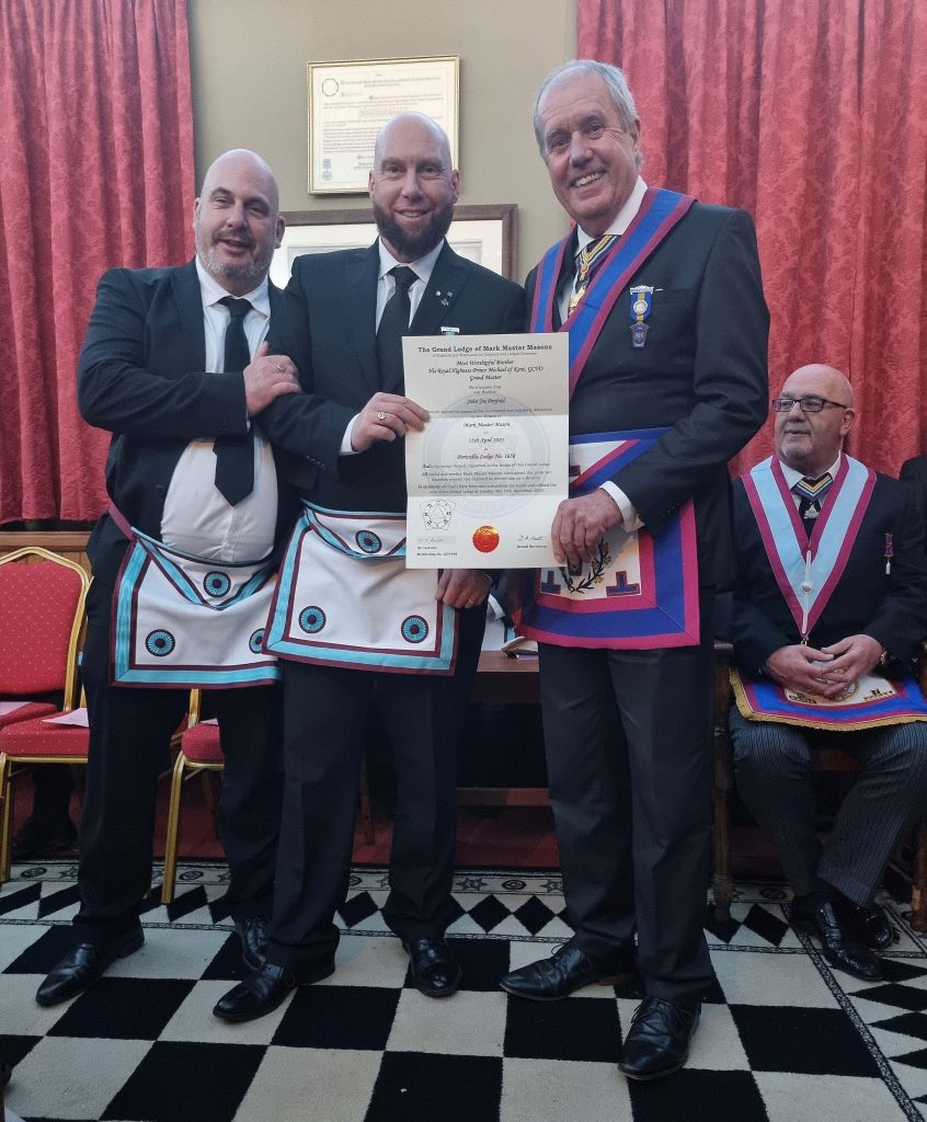 The PGM was then asked to present a Grand Lodge Certificate to Jon Joe Penfold which made a lovely picture.