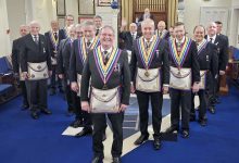 The Portcullis Lodge 1656 were delighted to welcome the Prov.GM, RW Bro Philip Voisey, on a private visit. The PGM is on a whistle stop tour of the Province before he retires in May. The Lodge performed a first class advancement ceremony for Bro Edward Penfold who came up all the way from Ivybridge in Devon to be advanced into his Brother’s Lodge dodging the flooded roads on the Somerset Levels. Edward fell in love with our medieval Chapel when he attended his Brother’s Passing ceremony and wanted to become a member. His Brother presented the working tools to him in fine style.