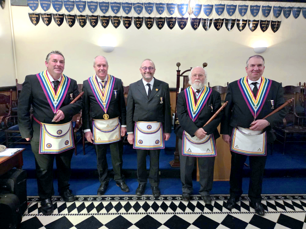 It was the first dry evening for weeks that welcomed the PGM and brethren to Chard for a ceremony of Elevation. After greeting the Provincial Grand Master and other guests, the lodge got down to the main business of the night, to Elevate Bro Alan Gitsham into this beautiful degree.