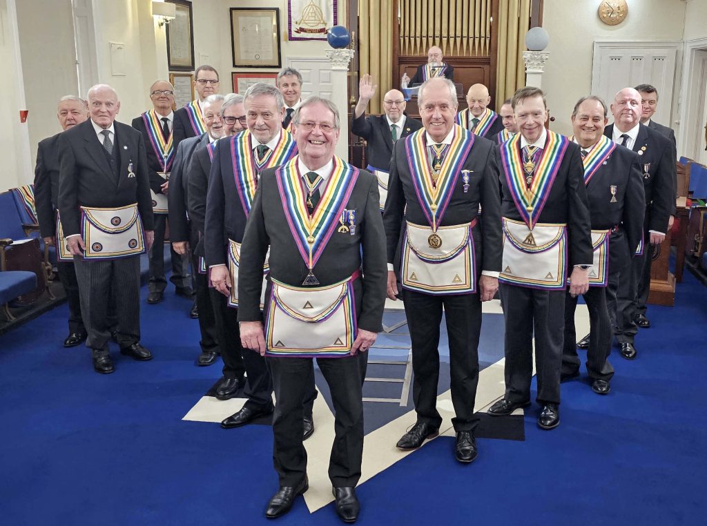 The main business of the meeting was a presentation of the RAM tracing Board which was well received and then flowed by a presentation by the Chairman of the Adventor Club Graham Jeffery to the PGM Phil Voisey, of a tie pin and Certificate, to compliment the cufflinks presented on a previous occasion for the completion of phase 1 and phase 2 of the Rich Conneely challenge to visit all Mark and Royal Ark Mariner Lodges in Somerset.