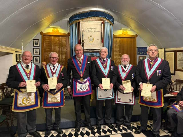 This photograph was taken at the meeting of the Science Lodge MMM No.128, held at Wincanton on the 16th April 2026 where W Bro David Rockey gave an excellent rendition of the Mark Master Masons Lecture.