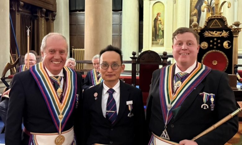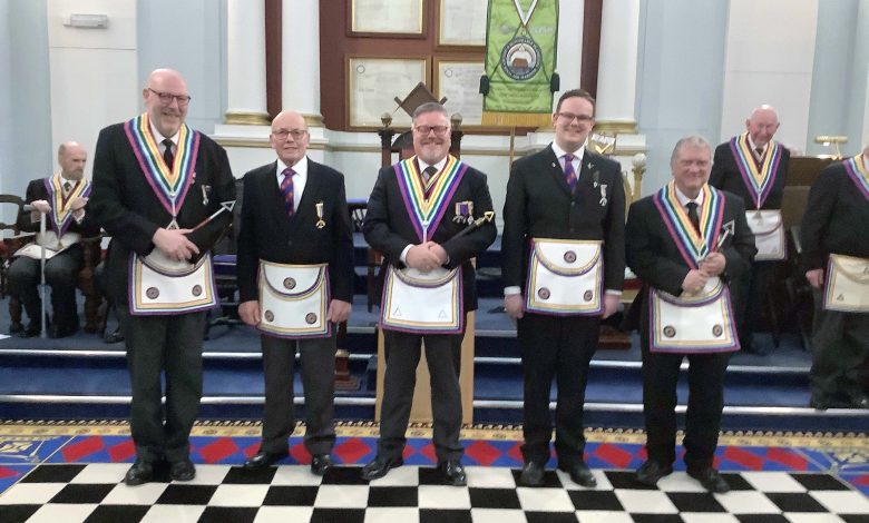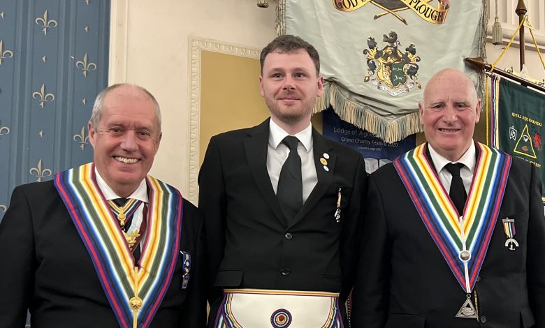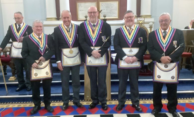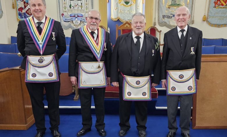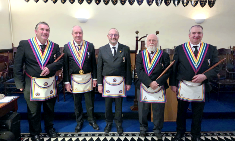 Read More »L to R Robert Thomas SW, Phil Voisey PGM, Alan Gitsham Candidate, Chris Jeffery Commander and Matt Layzell Acting JW…